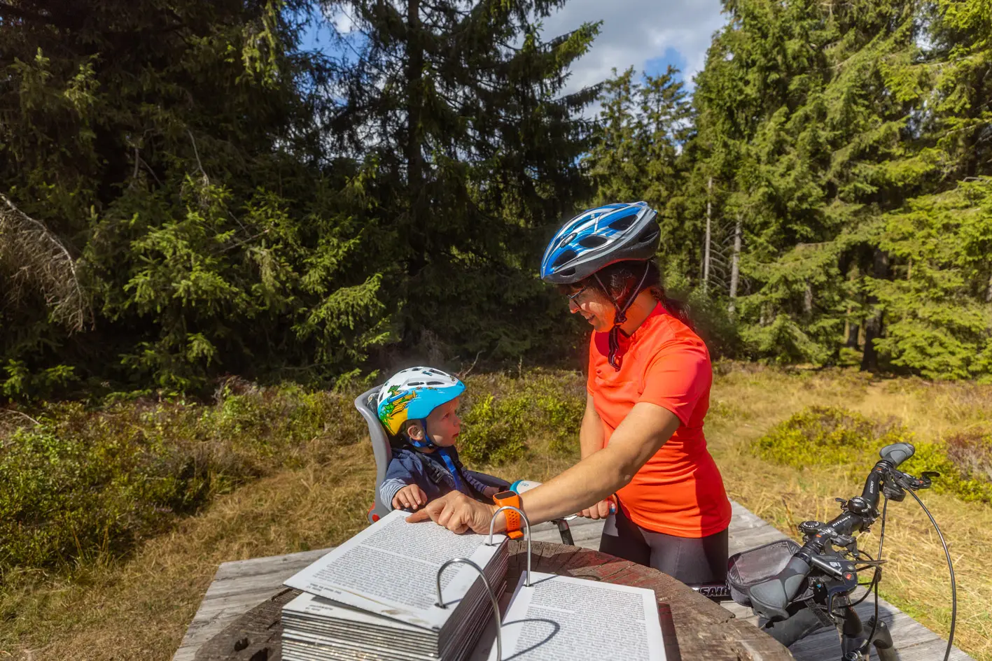 Es ist also nicht verwunderlich, dass die Kinder auf dem Landschaftsspielplatz unweit der Bergstation erst einmal überschüssige Energie loswerden wollen, bevor es an die Pedale geht. Hier bemerkt die Familie nun auch, dass Paula doch etwas im Auto vergessen hat, nämlich ihre Handschuhe. Da das jedoch jetzt nicht mehr zu ändern ist, geben Anne und Sascha schließlich das Signal zum Aufbruch, und das Viergespann macht sich auf den Weg.