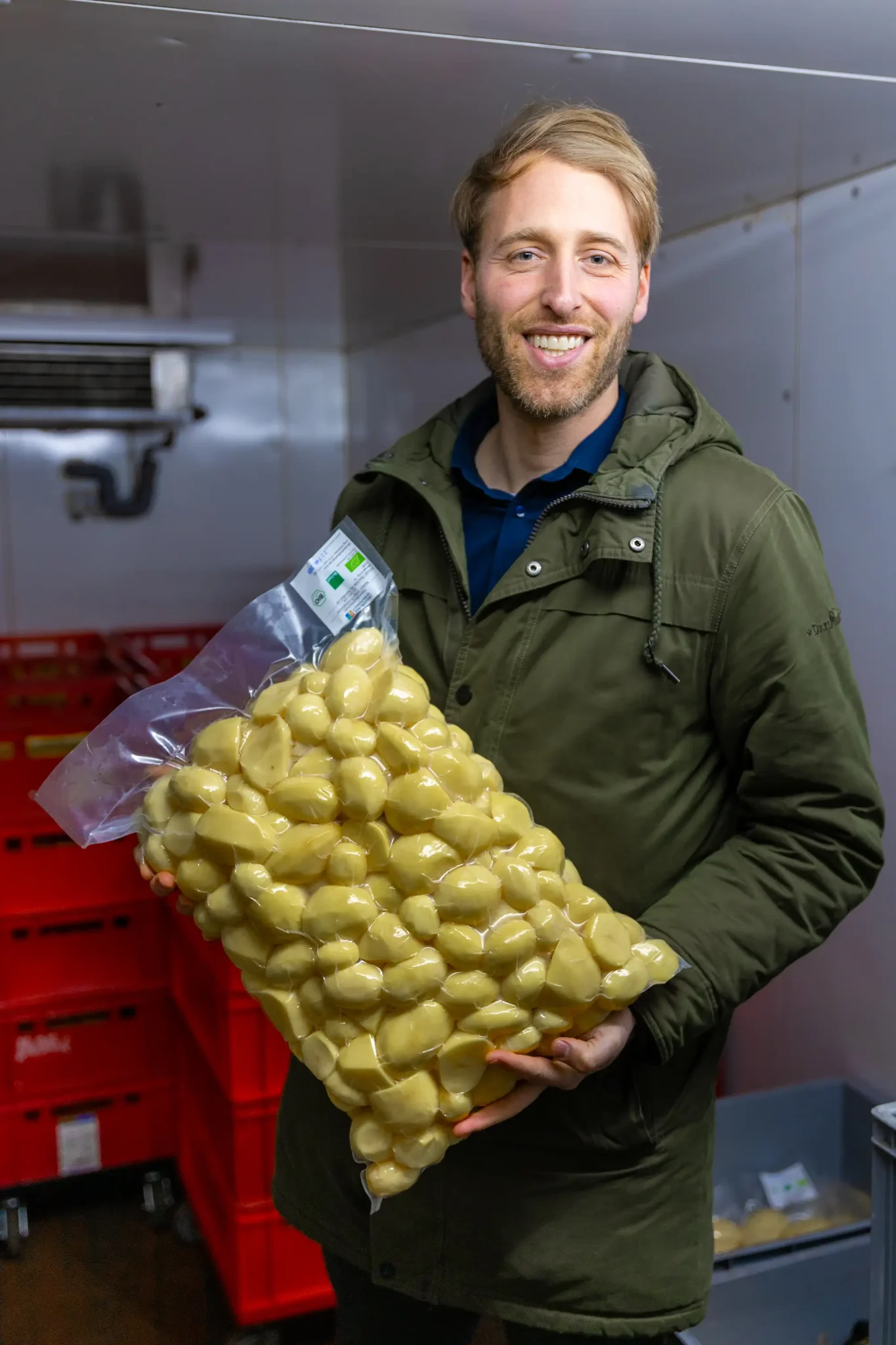 Ein weiteres Highlight des Hofguts ist die Schälmaschine, die es den Bewohnern ermöglicht, jährlich rund 180 Tonnen Kartoffeln zu verarbeiten. Diese Kartoffeln finden nicht nur in der Küche des Hofguts Verwendung, sondern werden auch in den weiteren Großküchen, Catering-Unternehmen und Restaurants im Raum Kassel und der Ferienregion Nationalpark Kellerwald verarbeitet. Hierdurch wird nicht nur die Selbstversorgung gefördert, sondern auch der Umgang mit Lebensmitteln und deren Wert geschult.