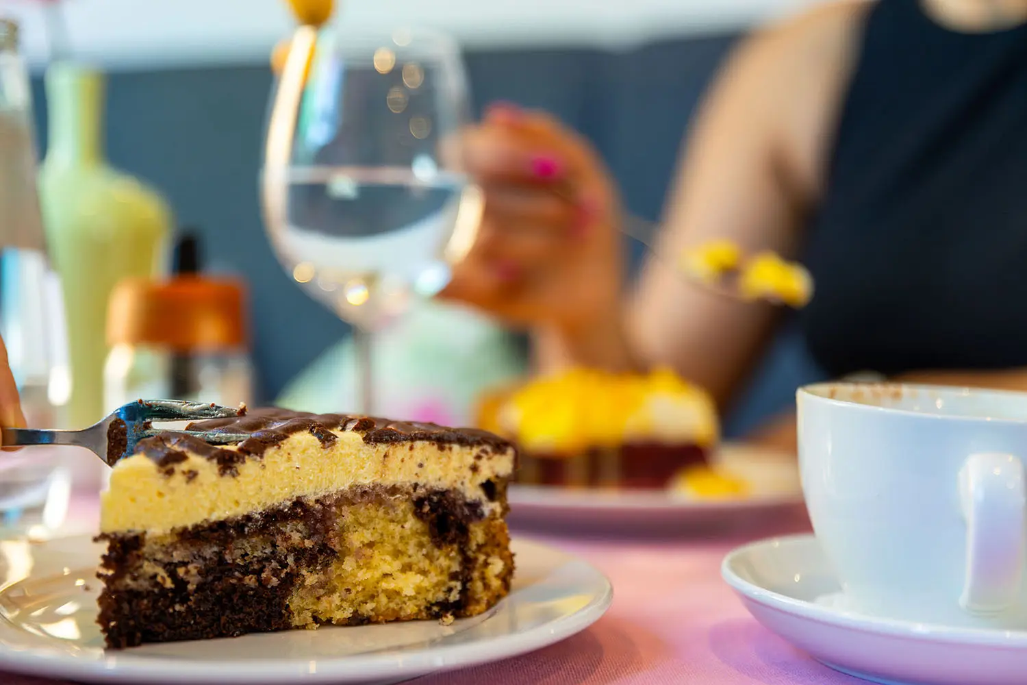 Gülay: Ich kaufe keine Kuchen. Wir backen unseren Kuchen komplett selbst. Alles, was du bei mir bekommst, ist vor Ort gebacken. Ich habe eine eigene Kuchenbäckerin eingestellt. Dieses Café liebte ich, wie gesagt, schon immer, weil es so leckeren Kuchen gab. Meine Vorgängerin hat mir dann all die alten Kuchenrezepte überlassen, die sie entdeckte. Das ist ein unbezahlbarer Schatz. Wir backen heute noch diese Kuchen. Die Rezepte stammen aus 1989 und ich lege großen Wert darauf, möglichst alles selber herzustellen. Die Gäste danken es uns.