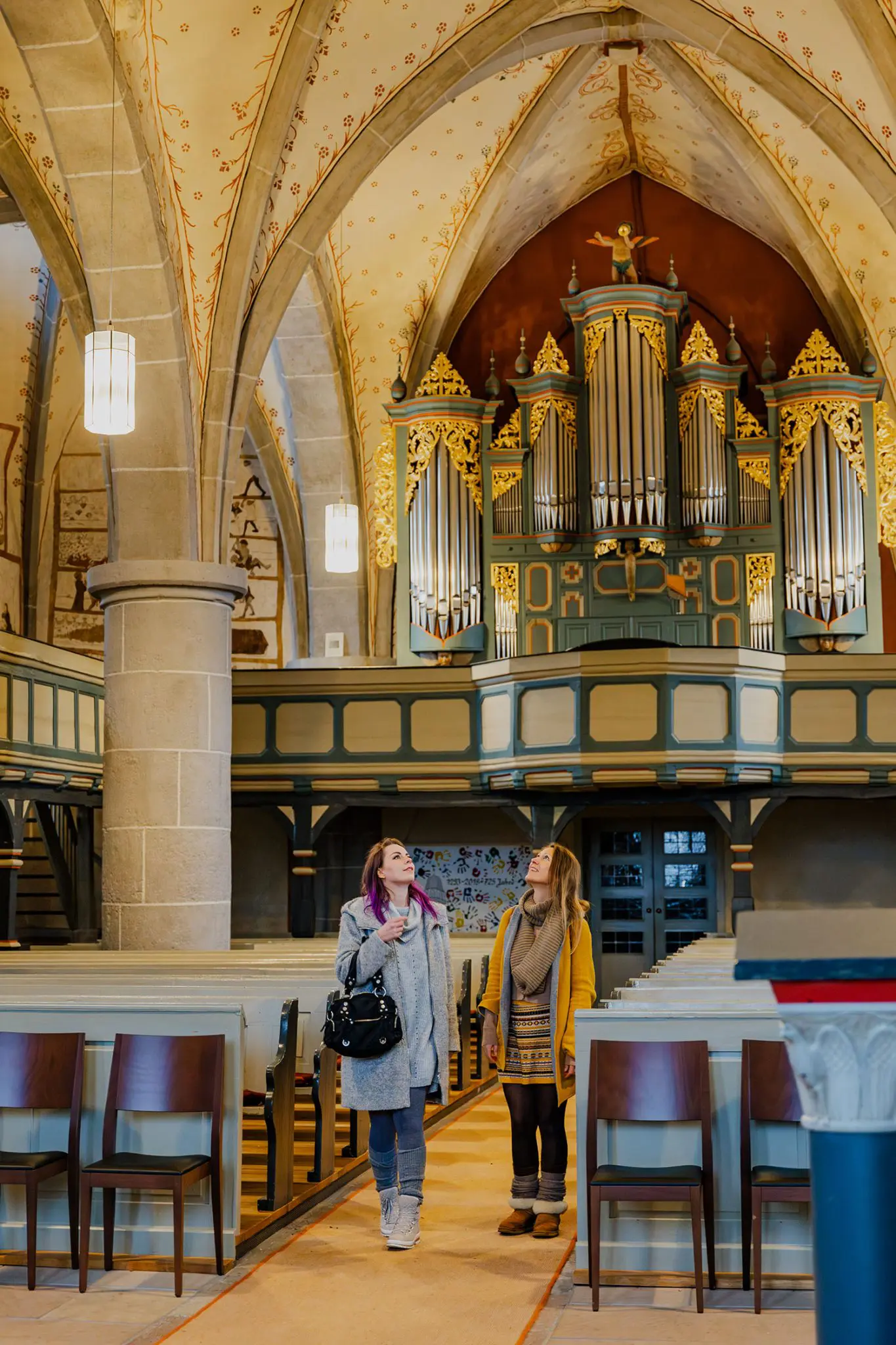 Neben dem Rathaus gehört auch die Zierenberger Stadtkirche zu den baulichen Highlights in der Altstadt. Der Beginn der Erbauung der evangelischen Kirche war ebenfalls im städtischen Gründungsjahr 1293. Durch die Verwendung der verschiedensten Steine (Kalkstein, Sandstein, Feldstein und Tuffstein) als Baumaterial hat sie ein leicht „farbenfrohes“ Erscheinungsbild. Das Innere der Kirche ist mit fantastischen Wandmalereien aus dem 14. und 15. Jahrhundert versehen, welche im Zeitraum von 1997 bis 2006 aufwendig restauriert wurden. Ein Besuch ist absolut lohnenswert! Geöffnet ist die Kirche in den Sommermonaten täglich von 10 Uhr bis 17 Uhr, und in den Wintermonaten wird sie eine Stunde früher, also um 16 Uhr geschlossen.