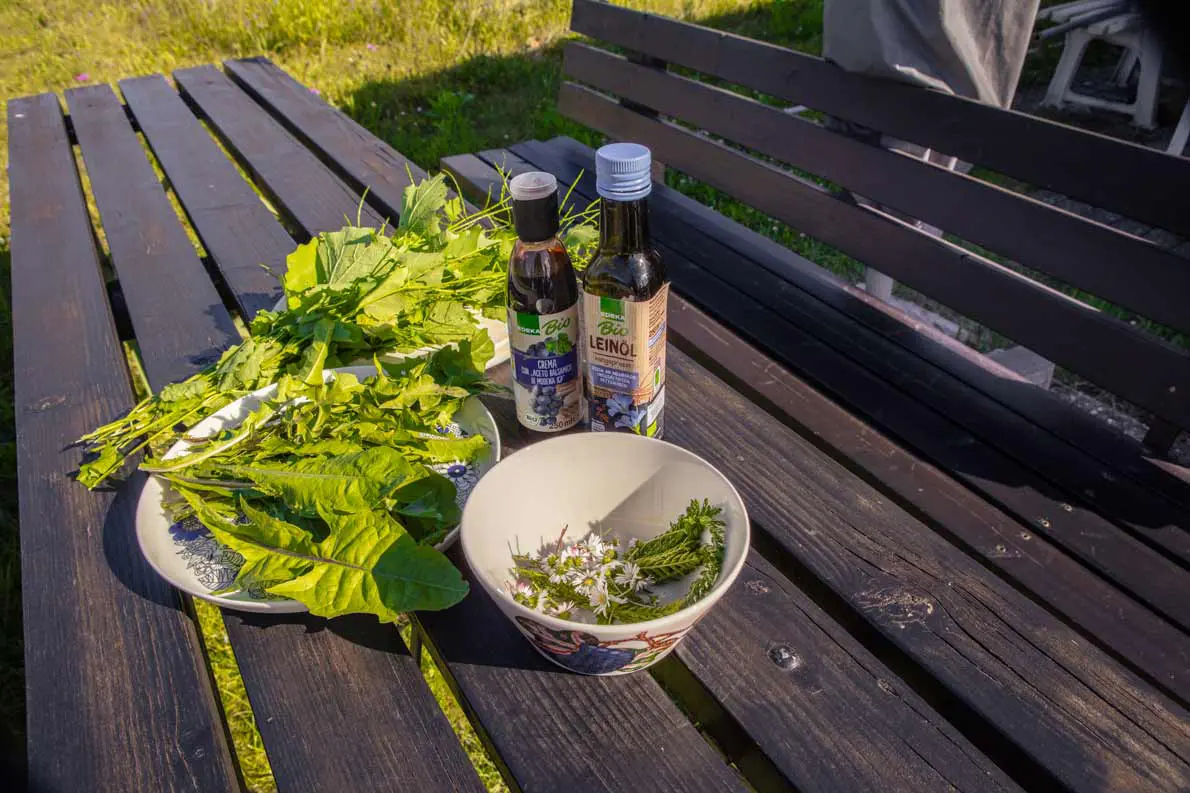 Wir finden alles, was wir für einen leckeren Salat auf der Wiese brauchen. Unsere Tochter glaubt es nicht. Wir lassen sie die Zutaten zusammensuchen. Alles wächst hier in Massen und ist schnell gefunden. Unkraut, mit dem wir eine ganze Mahlzeit zubereiten.