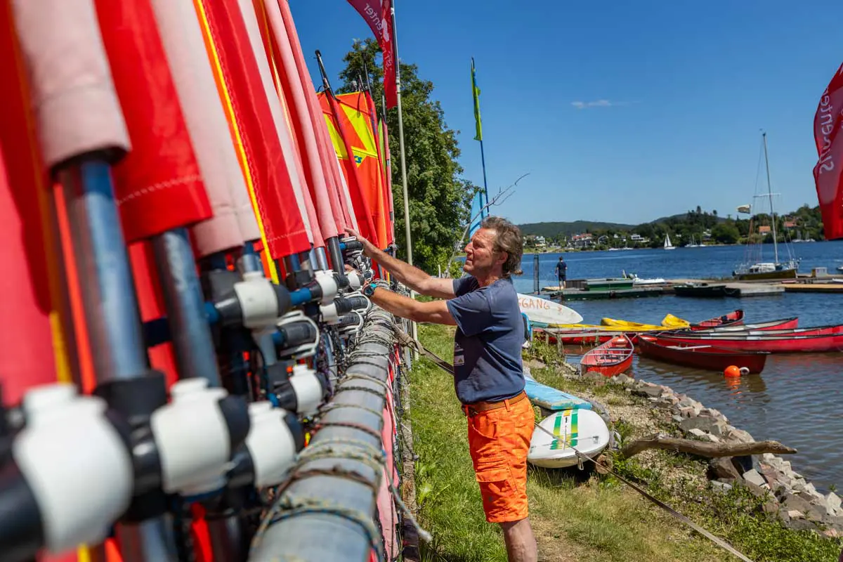 Die Windsurfschule verfügt über eine große Auswahl an modernen Ausrüstungsgegenständen, die den Schülern zur Verfügung stehen, um das Windsurfen in vollen Zügen genießen zu können. Die Windsurfschule „Windsurfing Edersee“ legt großen Wert auf Sicherheit und Spaß. Die erfahrenen Surflehrer vermitteln nicht nur die richtige Technik, sondern auch die wichtigsten Sicherheitsregeln, um Unfälle zu vermeiden. Darüber hinaus herrscht eine entspannte und freundliche Atmosphäre in der Windsurfschule, die es den Schülern von Anfang an ermöglicht, sich wohl und willkommen zu fühlen. Egal ob Profi oder absolute Neulinge, wie unsere edlake-Familie, Windsurfing bietet für jeden das passende Erlebnis. Fortgeschrittene Surfer können ihre Fähigkeiten weiter ausbauen und sich in spektakulären Tricks und Manövern üben, und Anfänger hingegen können sich langsam an die Sportart herantasten und mit Hilfe von erfahrenen Instruktoren die richtige Technik erlernen. Und genau das können Wassersportbegeisterte am Edersee perfekt!