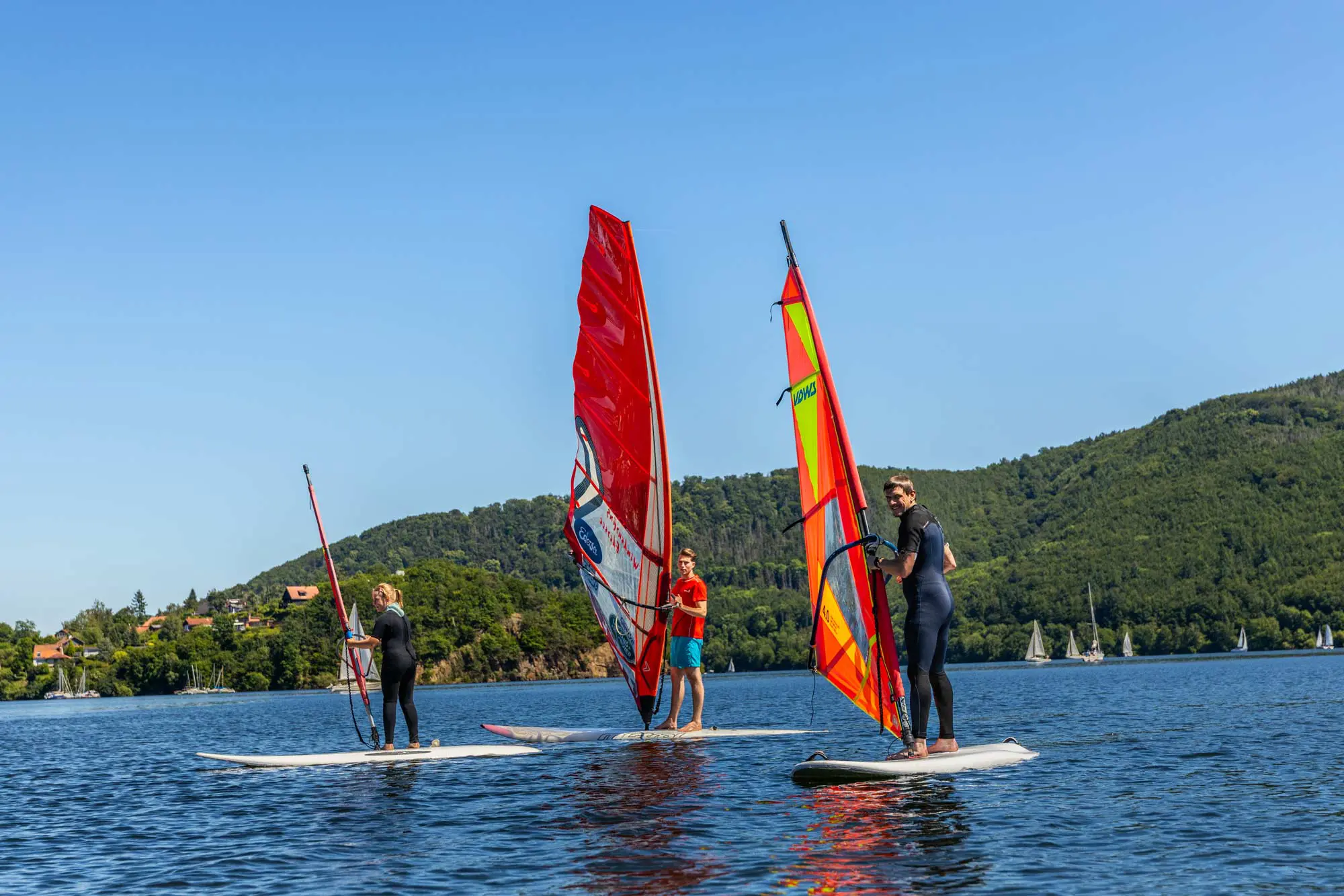 Windsurfing ist eine faszinierende Sportart, die Körper, Geist und Sinne gleichermaßen fordert und begeistert. Zudem vereint Windsurfing Elemente aus Segeln, Surfen und Wellenreiten und bietet dadurch eine abwechslungsreiche und actiongeladene Möglichkeit, sich im Wasser zu bewegen. Genau wie beim Segeln, bietet auch der Surfsport die Möglichkeit, mit der Natur in Einklang zu kommen und die Schönheit des Edersees zu genießen. Der Edersee bietet ideale Bedingungen für das Windsurfen, mit konstanten Winden und einer malerischen Landschaft im Hintergrund.