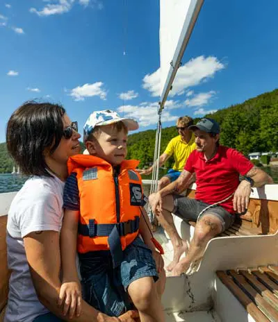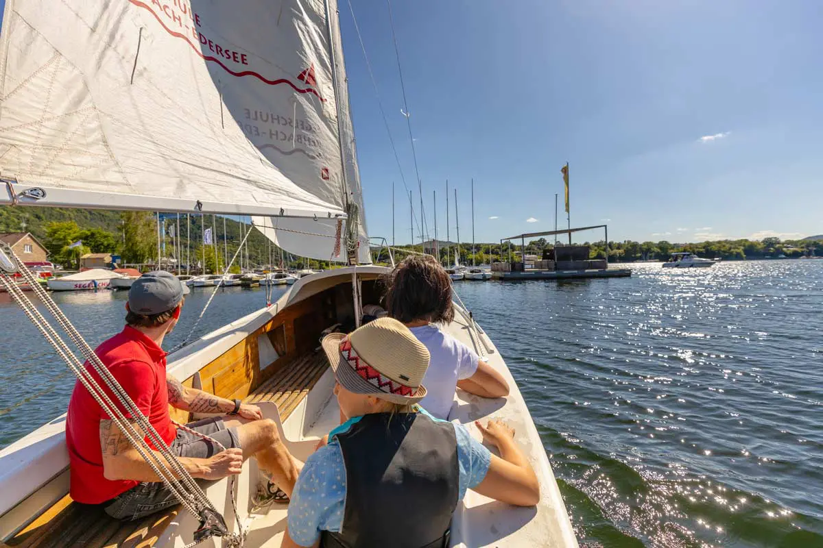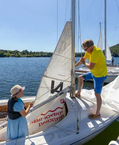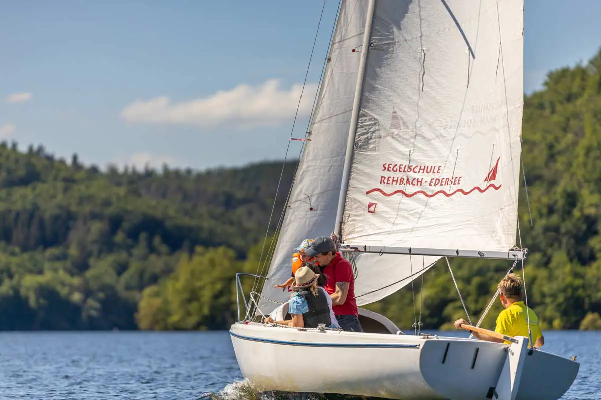Die Segelschule Rehbach am wunderschönen Edersee bietet sowohl Anfängern als auch erfahrenen Seglern die perfekte Umgebung, um ihre Fähigkeiten auf dem Wasser zu verbessern. Mit einer idyllischen Lage direkt am Ufer des Sees und einer erfahrenen und freundlichen Lehrercrew, ist die Segelschule Rehbach der ideale Ort, um das Segeln in unserer wundervollen edlake-Region zu erlernen, zu vertiefen, oder wie unsere Titelstory-Familie einfach erstmal reinzuschnuppern. Hat euch das Segelfieber gepackt, bietet euch die Schule eine Vielzahl von Kursen an, von Anfängerkursen für Segelneulinge bis hin zu Fortgeschrittenenkursen für erfahrene Segler, die ihre Fähigkeiten weiterentwickeln wollen. Mit modernen Booten und gut ausgestatteten Einrichtungen ist die Segelschule Rehbach der perfekte Ort, um in die Welt des Segelns einzutauchen. Aber falls ihr schon das Segeln beherrscht, könnt ihr euch natürlich dort auch ein Segelboot chartern und auf eigene Faust eine entspannte Segeltour auf dem Edersee genießen.