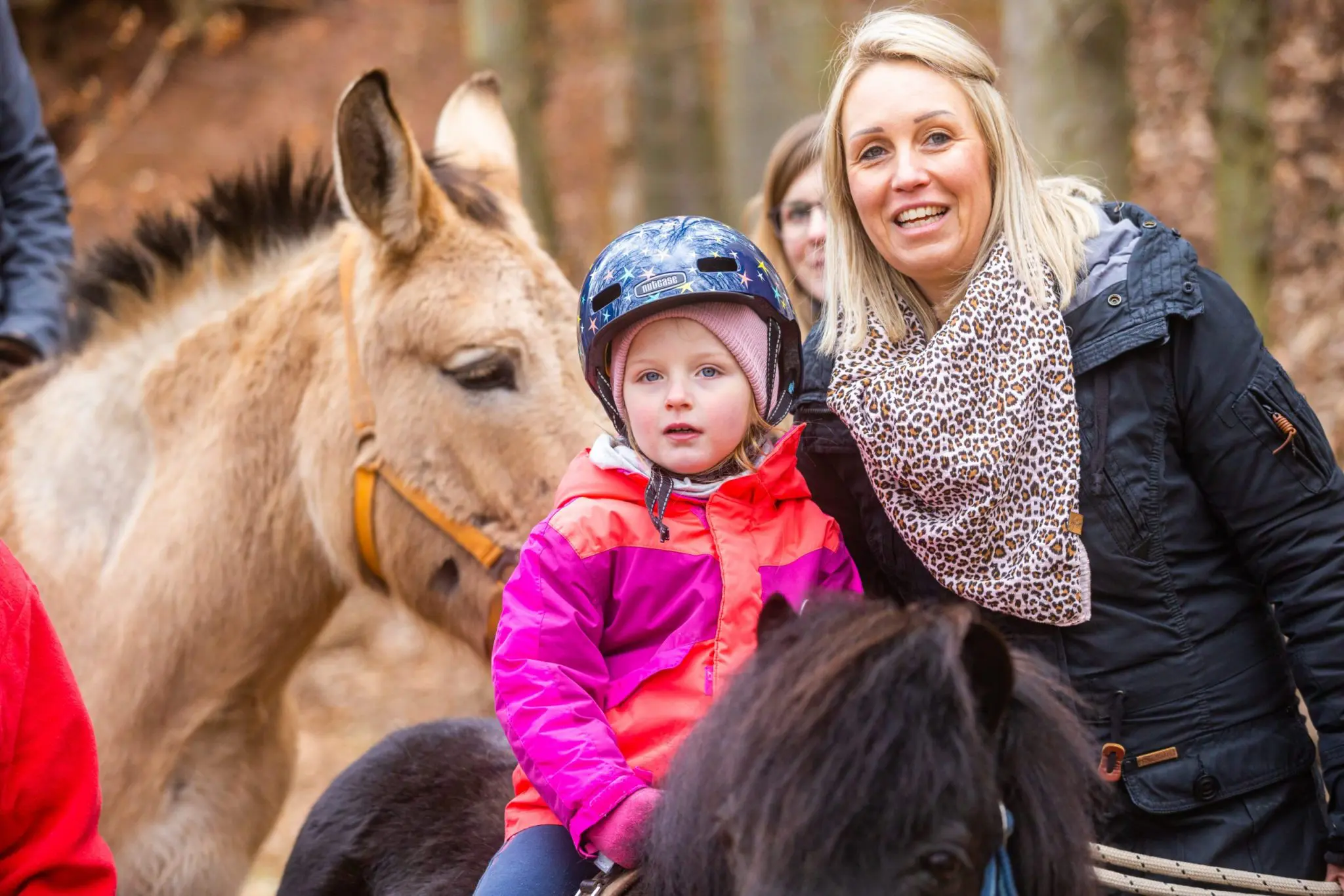 Anke und Thomas Gerdau warteten schon und Tochter Milena kommt gerade mit einer handvoll Leinen aus dem Stall, als wir auf dem Hof einfahren. Kaum war die Schiebetür auf, fing der fast 2-Jährige an, in seinem Autositz herumzurutschen. Nur wenige Sekunden später sah man ihn in der quietschgrünen Jacke über den Hof flitzen.
