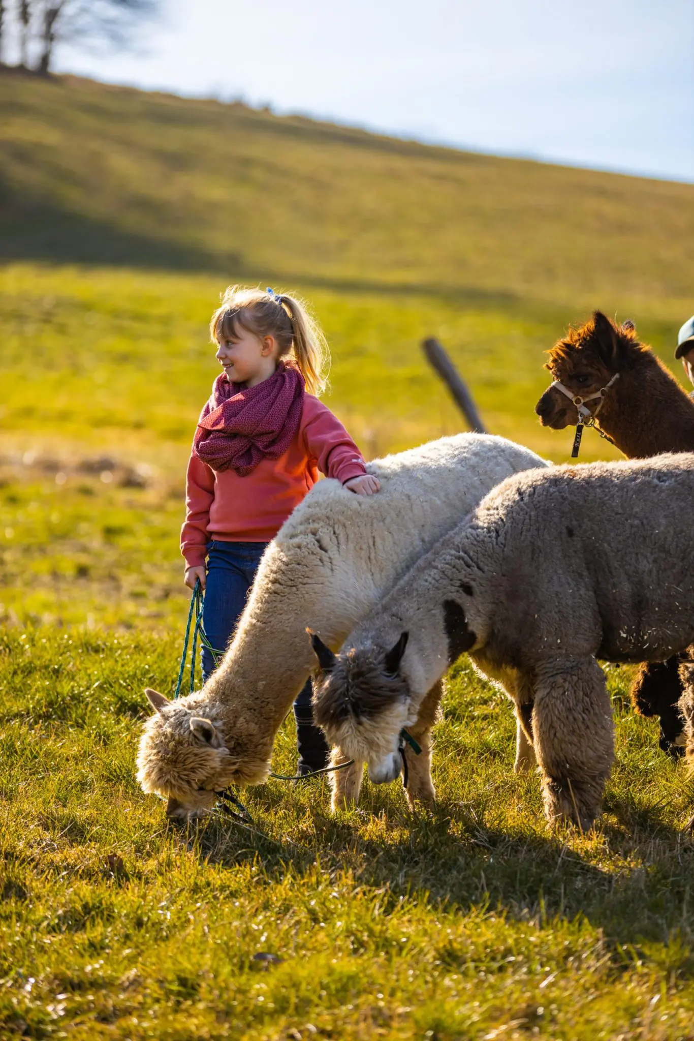 Alpakas sind da ein wenig entspannter. Doch auch sie können einen Gang hochschalten, und zwar genau dann, wenn es heimwärts geht. Die Aussicht auf frisches Heu, ein paar extra Leckerchen und ihre Kumpels auf der Weide lässt sie ab der letzten Steigung ein gutes Stückchen schneller gehen.