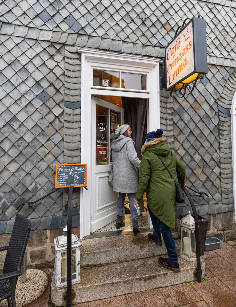 Auf halber Höhe zwischen Schloss und Stadtkirchen-Portal fällt uns ein kleines Café ins Auge, das den Namen Prinzess Emma trägt. Da wir ein kleines Hüngerchen verspüren und die Aussicht auf einen warmen Kaffee verlockend klingt, betreten wir das Lokal. Die Prinzessin überzeugt nicht nur mit leckeren Waffeln, sondern auch mit uriger Gemütlichkeit. Die Mischung aus geblümten Polstermöbeln und Kaffeehaus-Charme gefällt uns wirklich gut, und weil auch der Kaffee nicht zu verachten ist, gibt’s gleich noch einen mit auf den Weg.