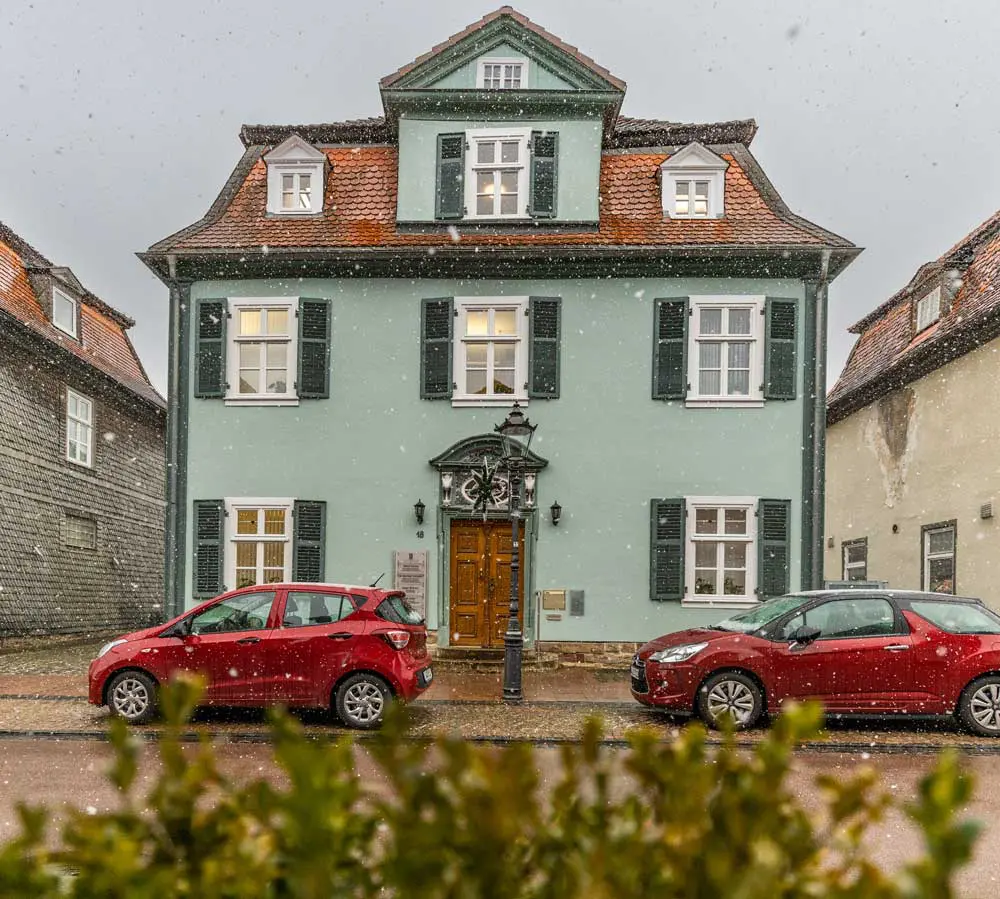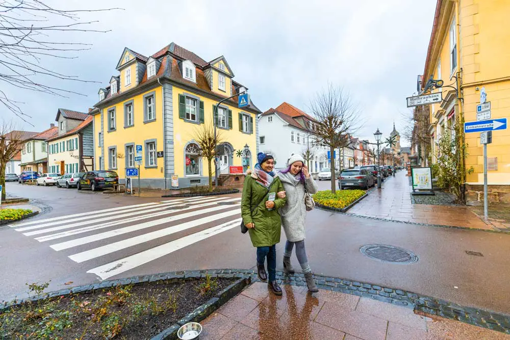Im Anschluss wird uns noch der „Barocke Spazierweg“ empfohlen, der einmal um das Schloss herum und durch den Baumpark führt. Wir schlendern in aller Ruhe also am Schlossteich vorbei und laufen einmal ums Schloss. An verschiedenen Stationen wird beiläufig die Geschichte der Stadt erzählt. Zurück auf der Schlossstraße zwischen Schloss und fürstlichem Marstall-Gebäude, welches heute das Christian-Rauch-Museum beherbergt, entscheiden wir uns spontan, nicht dem Weg Richtung Baumpark zu folgen, sondern stattdessen noch ein wenig die kleinen Boutiquen in Bürgerhäusern mit bunten Putzfassaden entlang der Schlossstraße und den gepflegten Nebenstraßen erkunden. Nach so viel Hochkultur ist ein bisschen Entspannung angesagt.