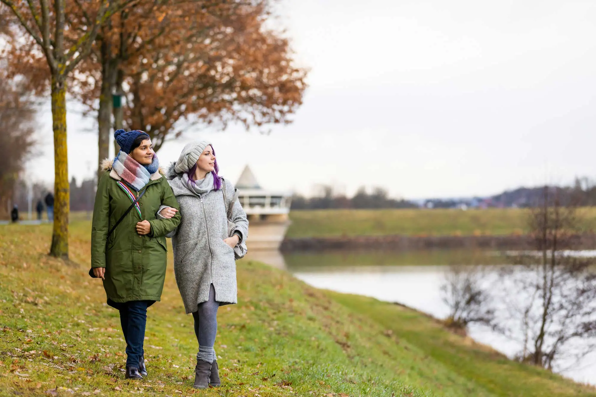 Da es für Wassersport schon etwas kalt ist und unsere Rückhand (oder war das Tennis?!) nicht so gut ist, entscheiden wir uns für eine Umrundung des Twistesee. Was nach einer sportlichen Höchstleistung klingt, ist bei dem kleinen Stausee mit einer Länge von gerade mal 2,8 km eher ein entspannter Nachmittagsspaziergang. Die 6,6 km lange Strecke führt entlang der Ufer und wird nur an einer Stelle von einem kurzen Abstecher in den angrenzenden Wald unterbrochen. Er führt vorbei an dem im Sommer gut besuchten Badestrand und der Wasserski-Anlage. Auf der anderen Seite passieren wir den Hundestrand und den ganzjährig geöffneten Campingplatz, der im Sommer auch immer ein schönes Kaffee-Plätzchen mit Blick auf den See zu bieten hat. Das markante weiße Gebäude oberhalb der Talsperre ist das „Café im See“, das ein leckeres Frühstücksbuffet und auch viele tolle Waffeln auf der Karte hat.