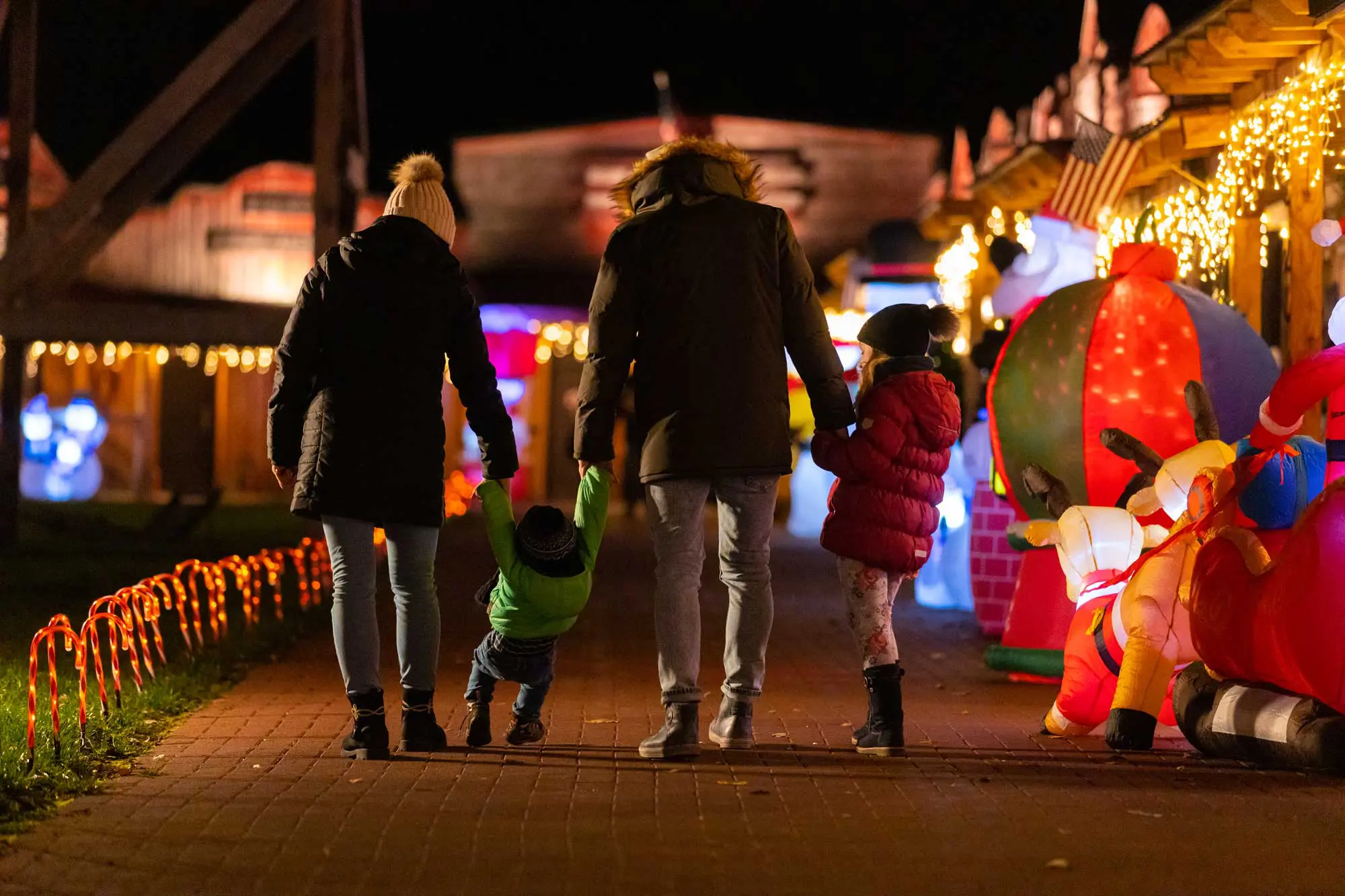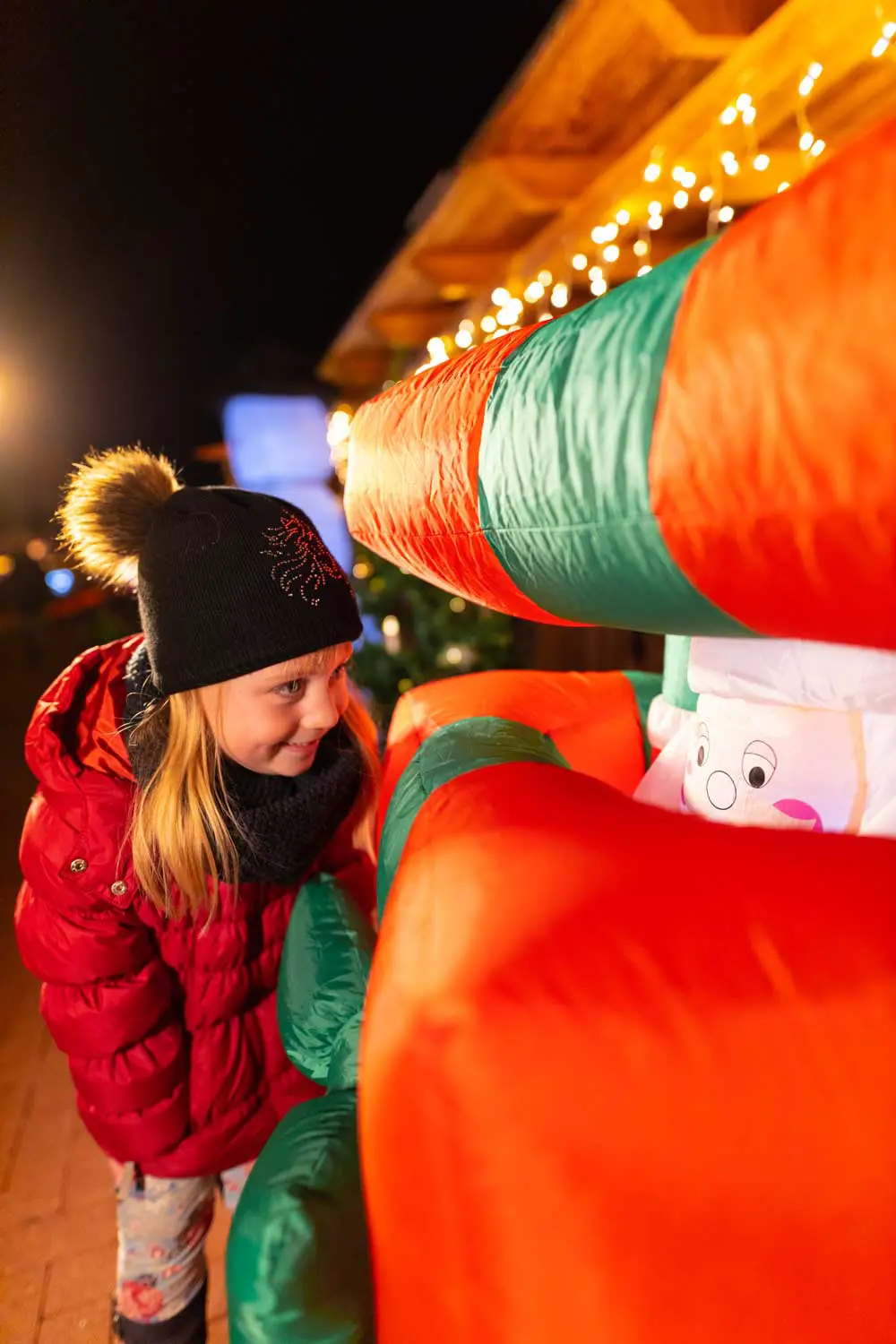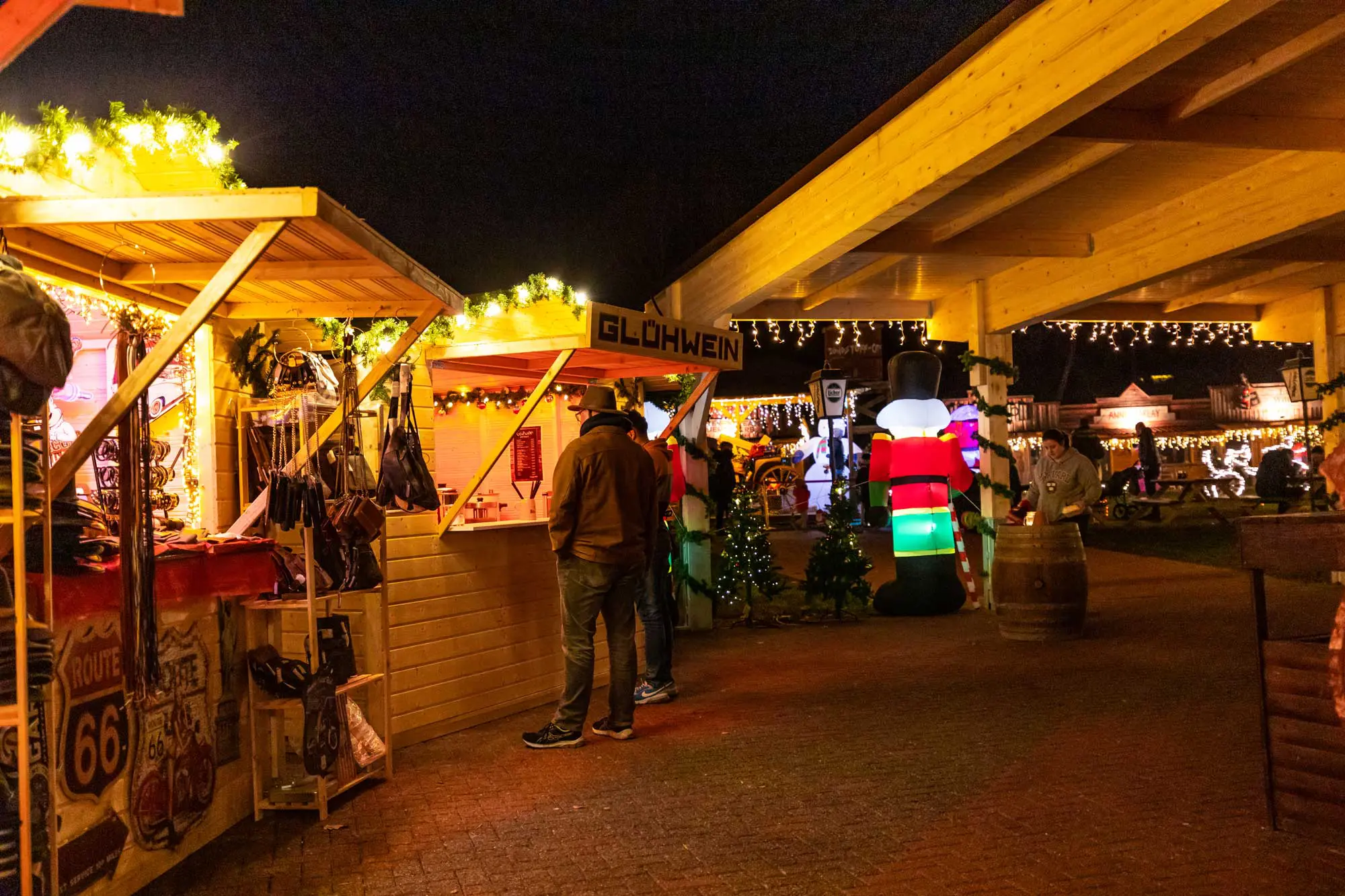 Hunderte von Lichterketten und eine opulente Weihnachtsdeko nach amerikanischem Vorbild machen aus der Western-Stadt ein Weihnachtsdorf der besonderen Art. Zwischen rot-weißen Candy Canes und überlebensgroßen Weihnachtsmännern dreht ein Weihnachtsexpress seine Runden. Und während die vielen kleinen Passagiere verzückt in den Wagen sitzen, beobachten die ganzen Eltern das bunte Treiben amüsiert vom Seitenrand.